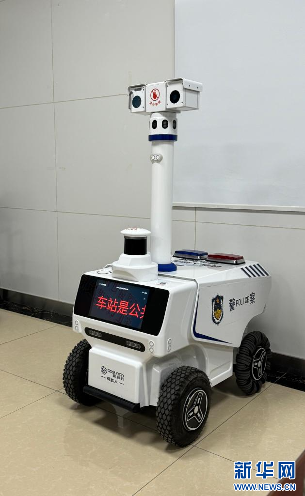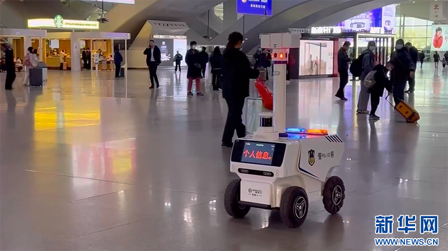 新華網廣州1月26日電(關錦恒)2024年春運從1月26日開始,至3月5日結束,為期40天。在廣州南站,一款“萌萌”的警用巡邏機器人上崗亮相,首次投入該站2024年春運安保工作。