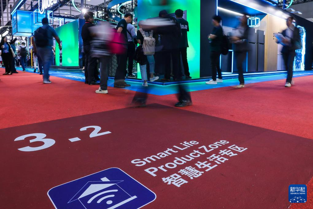 4月15日,參觀者在廣交會智慧生活展區參觀。新華社記者 劉大偉 攝