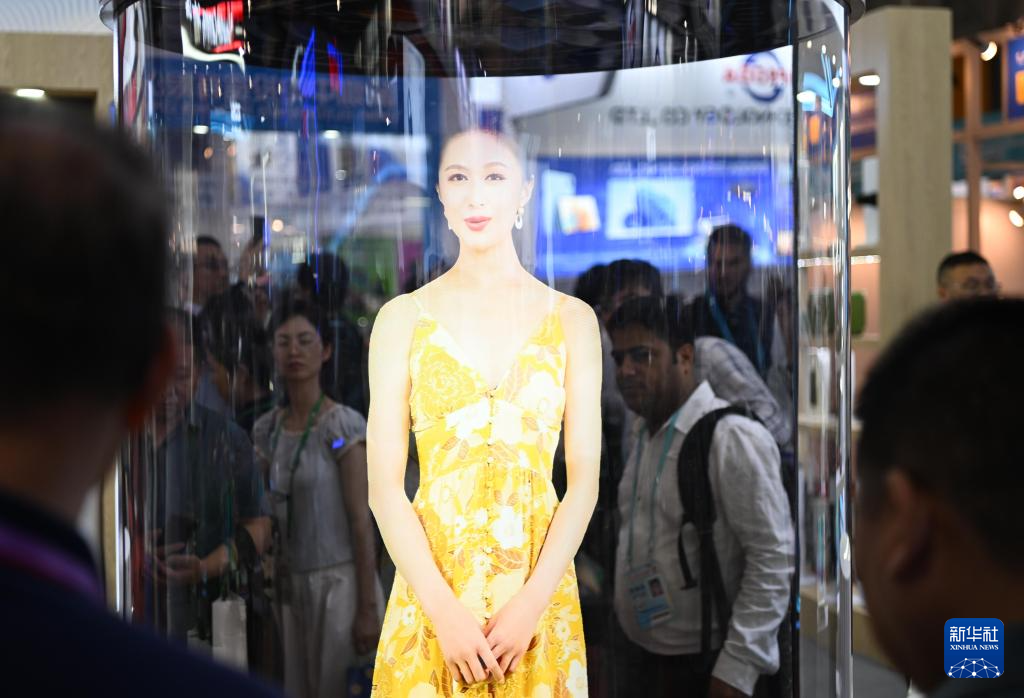 這是4月17日拍攝的一家企業展出的投影裝置。新華社記者 鄧華 攝