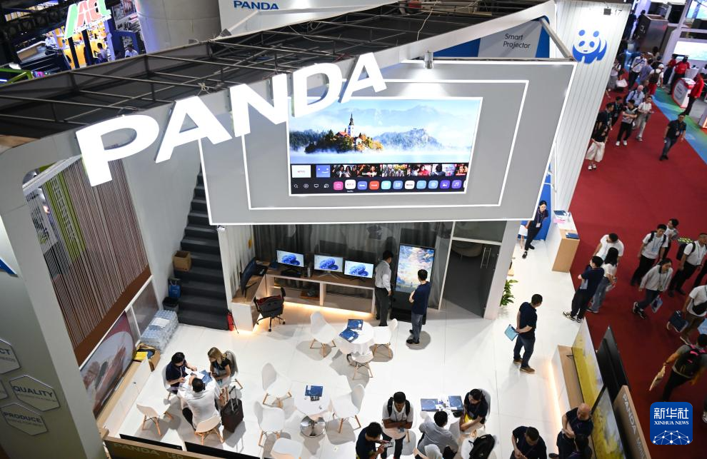 這是4月17日拍攝的熊貓電視展臺。新華社記者 鄧華 攝