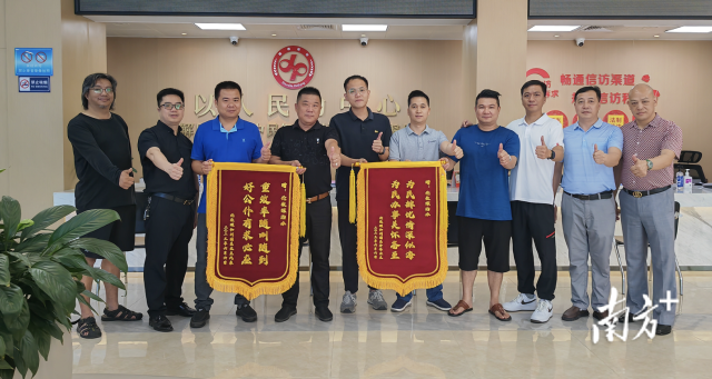 順德區倫教街道綜治中心成功化解一宗涉規上企業矛盾糾紛案件獲贈錦旗。順德區委政法委供圖