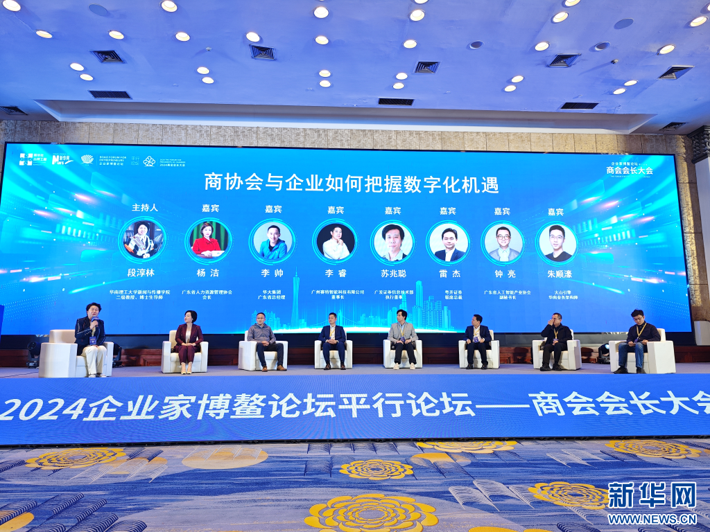 圓桌論壇環節,華南理工大學新聞與傳播學院教授、博士生導師段淳林作為主持人與7位來自不同領域的嘉賓,圍繞商協會與企業如何把握數字化機遇的主題進行深入的探討和交流。