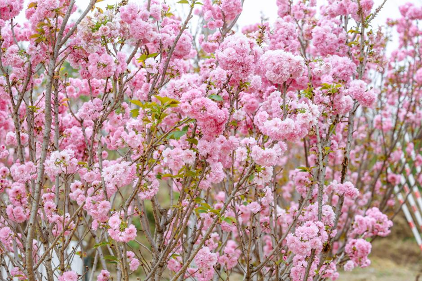 從化天適櫻花悠樂園里盛放的“貂蟬櫻”。(廣州市林業和園林局供圖)