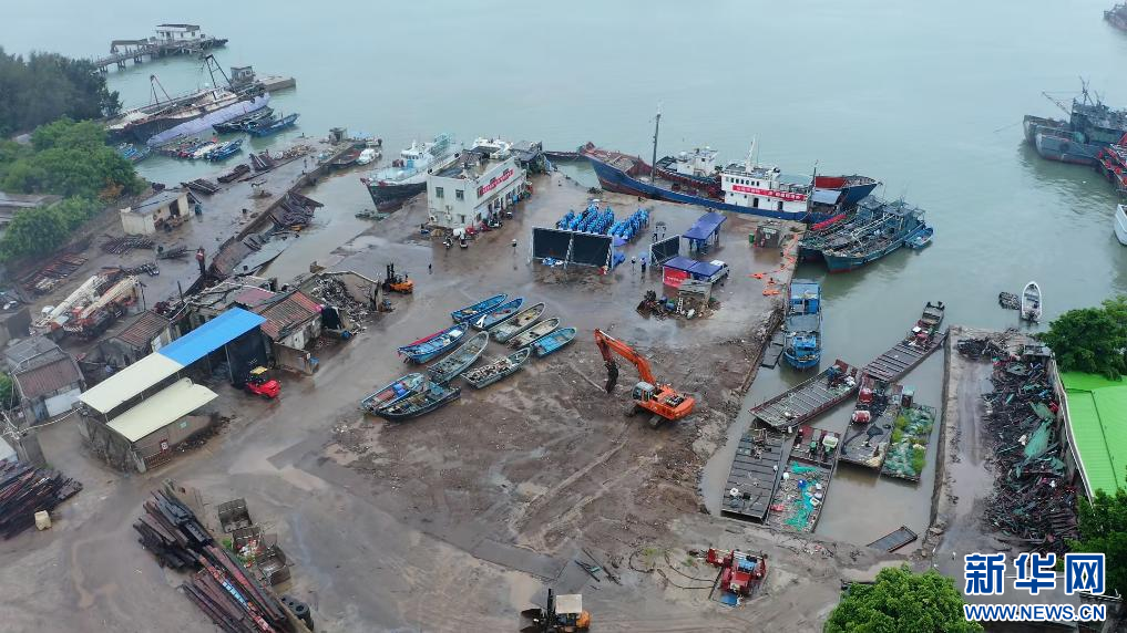 在湛江遂溪,工作人員利用大型挖掘機銷毀船舶。新華網發(廣東省海洋綜合執法總隊供圖)