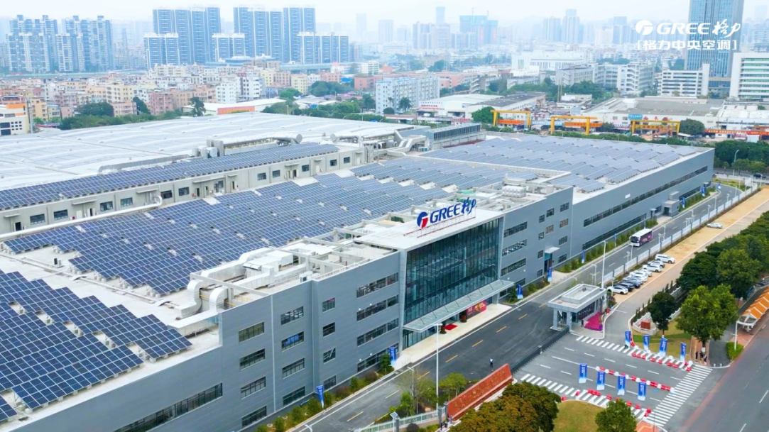 在工廠頂端,1200多塊光伏板整齊排列,光伏發電與空調的結合,為新型電力系統建設實現帶來新思路。目前,這座工廠年碳減排超過6100噸。