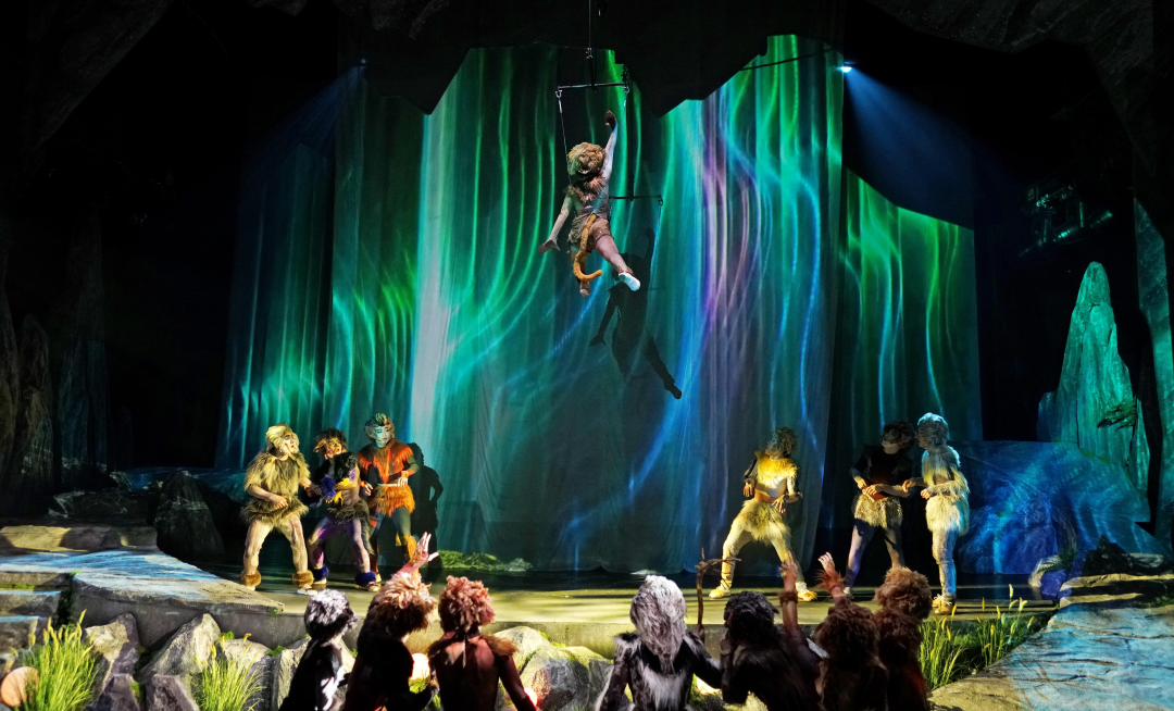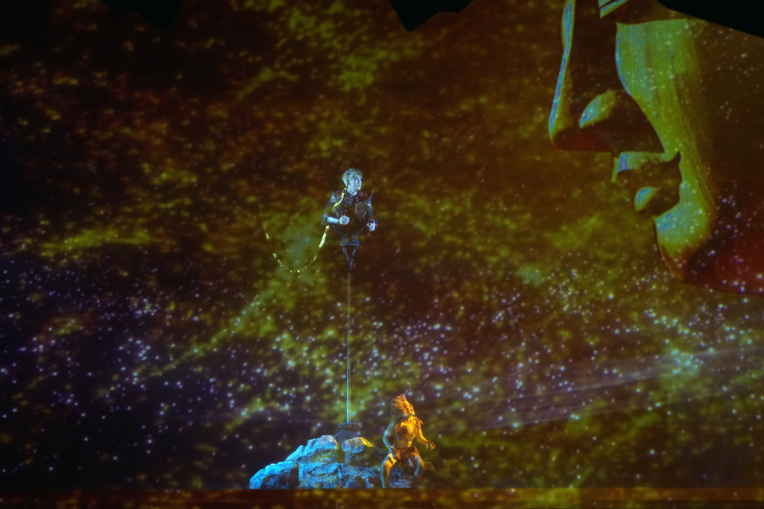 《西游·悟空》融合了眾多現代舞臺科技手段,將雜技、武術、話劇、木偶、4D 立體投影等多元藝術形式加以結合,塑造出如夢似幻般的感官體驗,讓觀眾能夠全身心地沉浸于驚奇而神秘的神話世界之中。