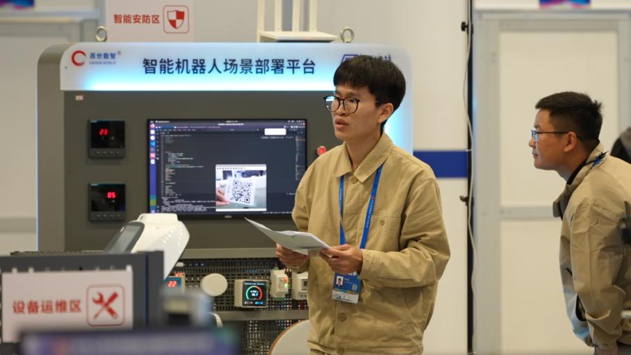 廣州市輕工技師學院人工智能產業系教師、服務機器人應用技術項目裁判何波表示,該賽項深度融合多模態大模型、數字孿生調試及云-邊-端協同決策等前沿技術,需要將傳感器、通信、人工智能、視覺識別等所有東西連起來組成一個系統,這是一個技術難點。