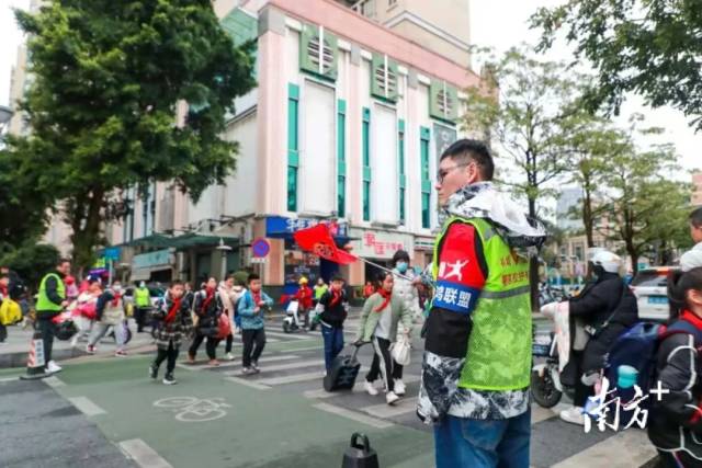 禪城區飛鴻聯盟的警家校護暢隊守護上、放學交通安全。佛山市委政法委供圖