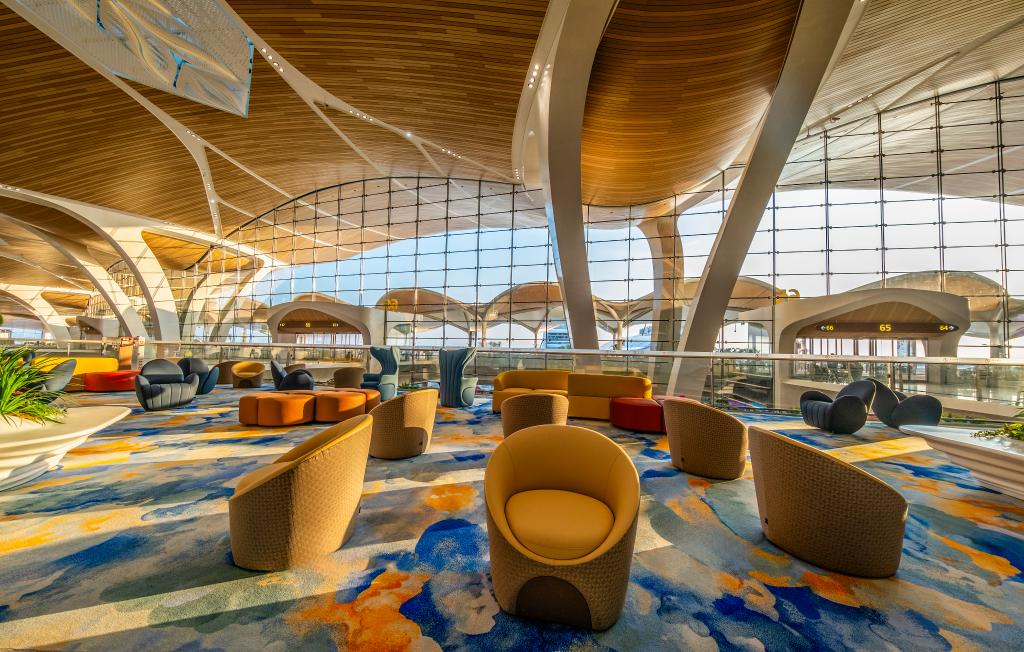 “穗”是花城廣州的別稱。白云機場T3航站樓將高顏值的文化符號,藏進每一處細節里?;ò晷徒ㄖ芸?、花瓣型張拉膜雨棚、灣區廣場的花瓣島、“花”形值機島、“花”形白色線條、“青花”圖案羊毛地毯,讓旅客仿佛置身花海。