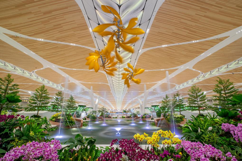 T3航站樓是一座“高顏值”機場。其建筑造型以“花”為設計主題,融入“云山珠水”“花城”的廣州特點,建筑造型如鮮花盛放,形成“羊城花冠”的建筑意象,成為廣州城市門戶形象的地標性建筑。