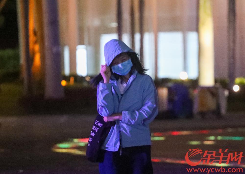 11月7日晚,“立冬冷空氣”攜風雨來到廣州,市民改穿厚衣頂風出行