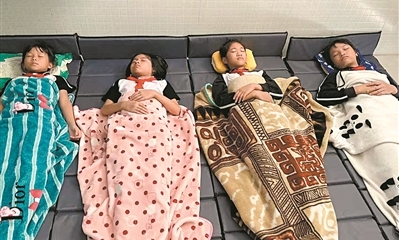 勒流裕源小學以地板鋪設的形式讓學生“躺睡”。
