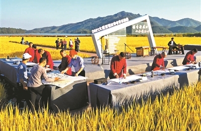 艷陽高照,稻浪飄香。11月29日下午,江門開平市舉辦“稻香歌盛世,山水誦初心——2021大塘面稻田詩書音樂雅集”,邀請近50名書法家、詩詞作者和器樂演奏家在大沙鎮大塘面村現場創作。