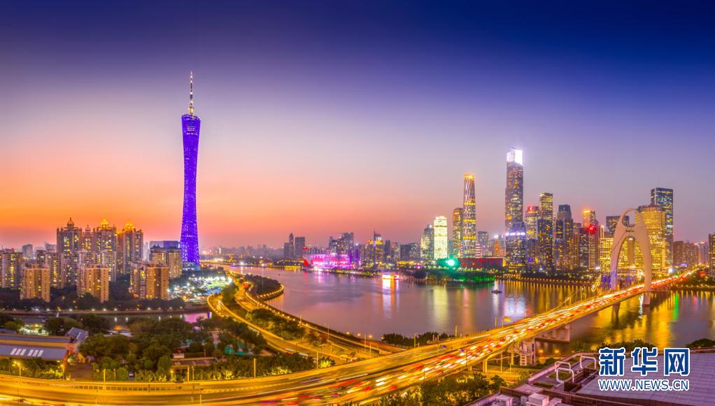 夜幕下的廣州燈火旖旎。新華網發(藍遠峰 攝)
