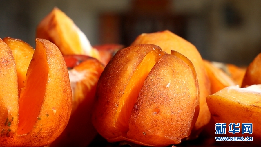 冬日暖陽,在廣州市從化區江埔街上羅村,正是柿子晾曬好時節。新華網發(羅素玲攝)