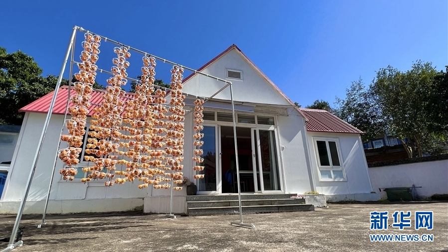 村里不少村民家的樓頂和門前屋后都曬起了柿子干。新華網發(羅素玲攝)