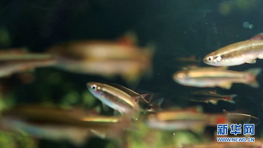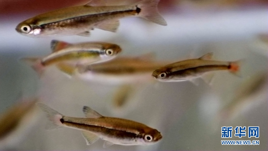 唐魚又名白云山金絲魚,魚體呈梭形,全長3至4厘米,大眼。新華網發(羅素玲攝)