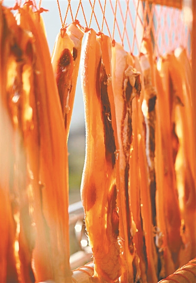 近日,在韶關樂昌的大街小巷亭臺院落間,伴著冬日的暖陽,隨處可見一串串、一塊塊、一砣砣、一根根、一條條讓人眼花繚亂的臘肉、臘腸、臘鴨、臘魚、臘豬蹄。冷冽的北風起時,一陣陣馥郁的肉香四處飄蕩。這是鹽的味道,山的味道,風的味道,陽光的味道,也是時間的味道,人情的味道。這些味道,才下舌尖,又上心間,讓人們幾乎分不清哪一個是滋味,哪一種是情懷。