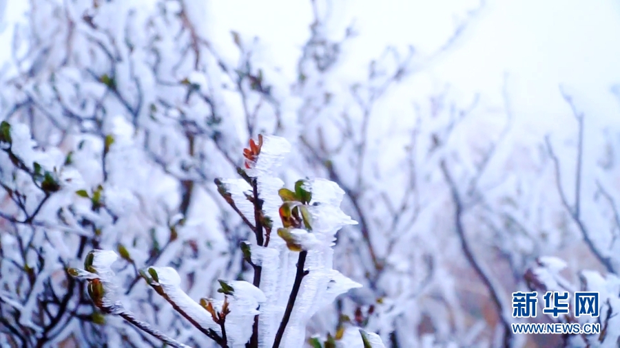 枝頭的霧凇形態各異,宛如瓊樹銀花漫天開放。新華網發(曾令華 攝)