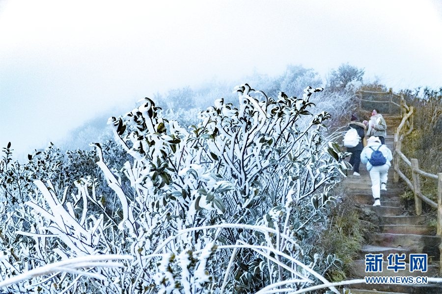 游客行走在山中仿佛進入了“冰雪世界”。新華網發(曾令華 攝)
