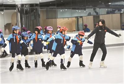 番禺執信國際教育部主任張潔介紹,滑冰基礎課程已在這所九年一貫制的學校全面鋪開,可以保證學生每學年不少于4課時的上冰學習,聘用優秀冰雪教練員和運動員組建師資團隊,除了開展全面普及教育,還開設滑冰第二課堂,一周三天,有60名學生參與其中。
