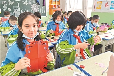 “剪紙就是要線線相連,剪刀動,紙不動……”在疏附縣明德小學的教室里,一堂關于小動物的剪紙課讓孩子們特別興奮。為增強疏附縣中小學生的文化自信,廣州援疆工作隊探索出了一條“非遺傳統文化進校園”的路子。今年廣州駐疏附工作隊已在疏附各中小學構建了15個非遺傳統文化課程體系,設置了310個特色文化課堂,剪紙、國畫、舞龍舞獅等非遺傳統文化在各中小學“遍地開花”。