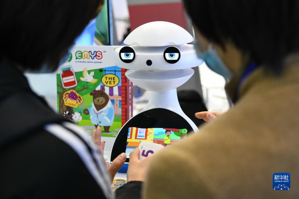觀眾在第二十三屆高交會波蘭展位上了解一款教育機器人(12月28日攝)。新華社記者 梁旭 攝