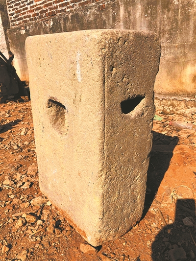 在建中的南粵古驛道文化遺產活化項目——河源市連平縣大湖鎮何新屋“古驛道之家”,自上月在客家圍龍屋何新屋西南片區施工清理殘墻泥土時,意外挖出一套完整的清代珍貴文物——石碓石器。昨日,何新屋再次傳來好消息,施工人員又在何新屋古驛道之家旁的一處菜地里,挖出一塊清代武舉人何景照練武時使用過的練武石墩。