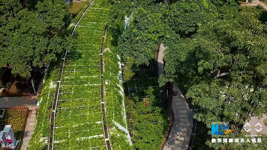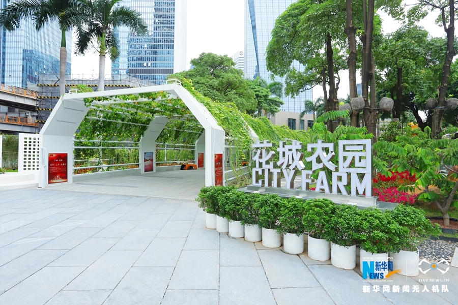 位于廣州中軸線花城廣場北端,有一座“花城農園”。新華網發