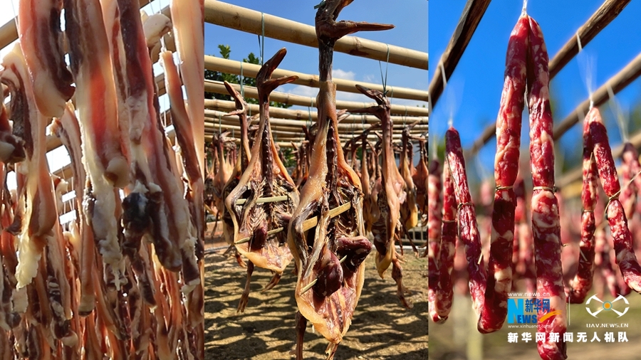 臘肉、臘鴨、臘腸......生曬肉類品種多樣。新華網發(羅素玲 攝)
