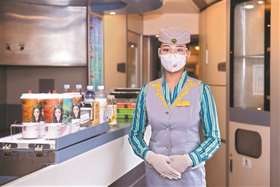 “我們上崗會隨身攜帶一個設備包和一個乘務箱,包里裝著工作用具,箱子里則是個人用品?!表n笑給記者介紹,“設備包里有健康證、工作證、對講機耳機線、零錢包等,還有防疫三件套:口罩、手套、護目鏡?!?/p>
