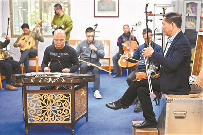 興東居委文化站正上演一場由社區居民參與演奏的小型音樂會。