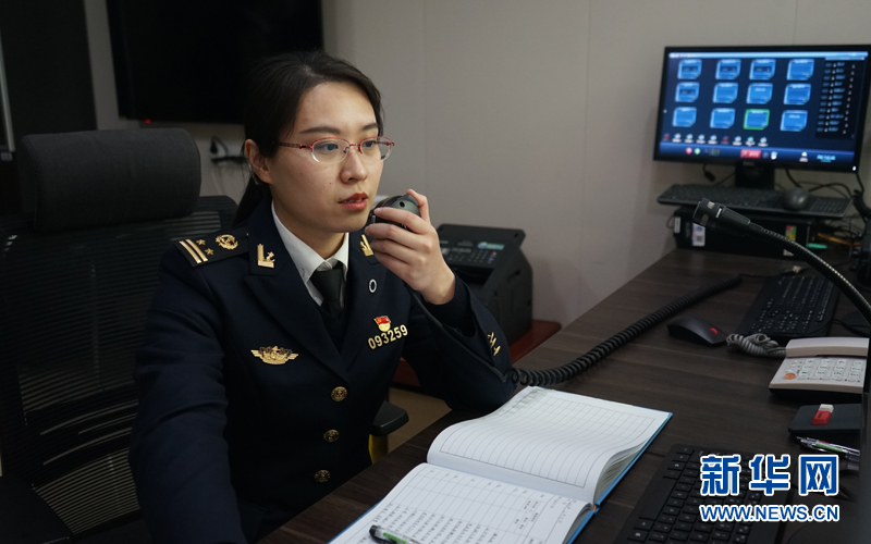 “廣州財富,內港海事叫;廣州財富,內港海事叫……”結束現場巡航后,鐘蓉回到智慧海事監控室,對珠江航道的各個重要航段開展電子巡航和動態管控。新華網發 (郭智航 攝)