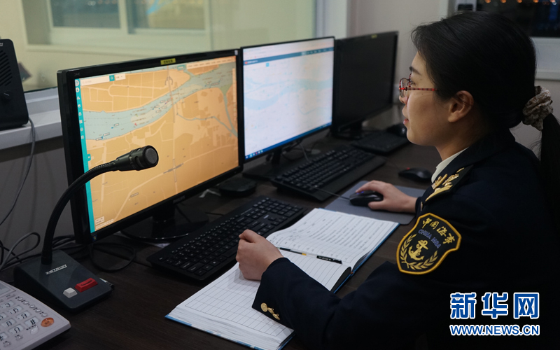 智慧海事監控室集合了監管指揮系統、船舶自動識別系統、CCTV高清視頻系統等信息化手段,可對市內水巴、珠江夜游船舶進行數字化監管,并對正在營運的水巴和珠江游船逐一編號,一旦有船舶信號出現異常,平臺會自動報警。圖為鐘蓉在監控室進行監控。新華網發 (郭智航 攝)