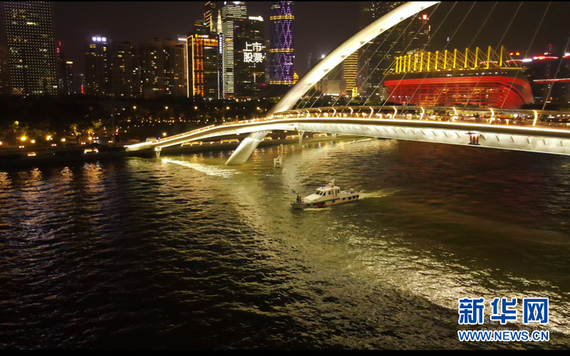 廣州水網發達,春運期間,市民平常搭乘的輪渡、旅客珠江日夜游呈現集中出行情況,這對水上安全監管工作提出了更高要求。夜晚巡航是鐘蓉和同事的必要工作。新華網發 (郭智航 攝)