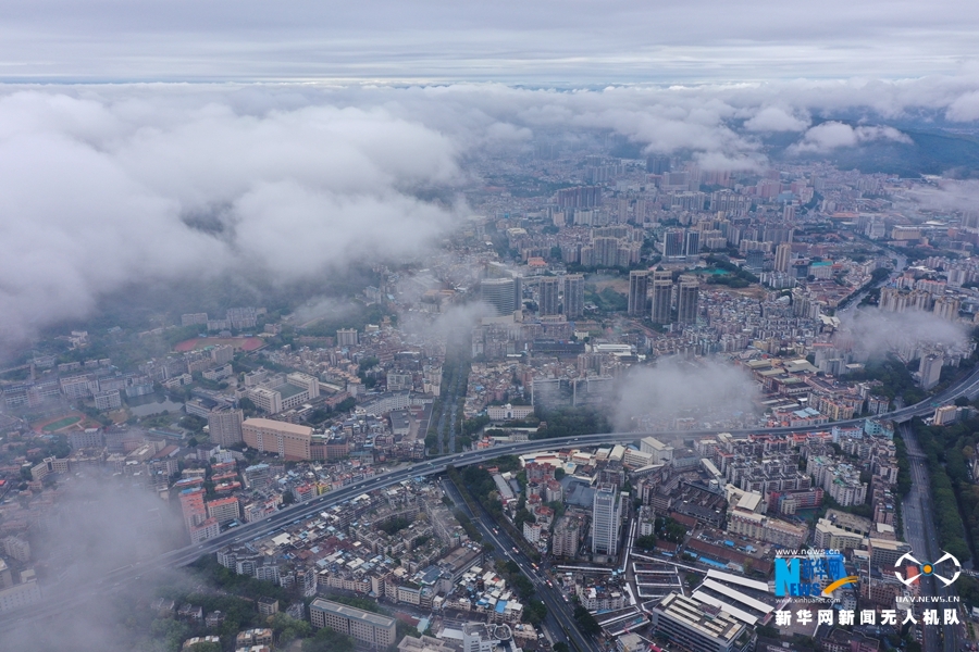 廣州城區若隱若現,宛如“天空之城”。新華網發(沈敦文 攝)