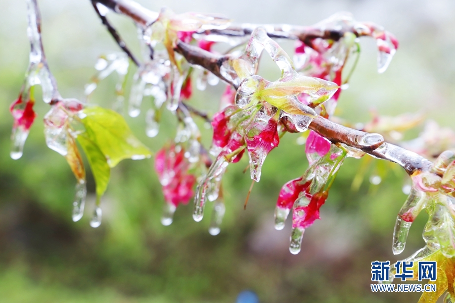 樹枝上、綠葉上、花卉上......各式冰掛,風姿百態。新華網發(鄺健華 攝)