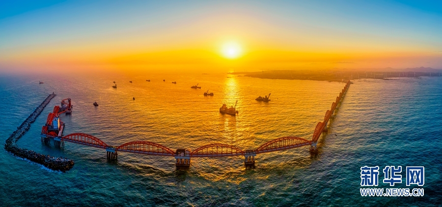 施工船舶在海上作業。新華網發(郝留建 攝)
