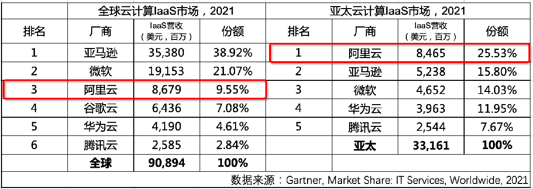 4月15日,行業權威研究機構Gartner發布2021年全球云計算IaaS市場份額數據,顯示阿里云排名全球第三,市場份額為9.55%,連續六年實現份額增長;同時,阿里云排名亞太市場第一,市場份額為25.53%。
