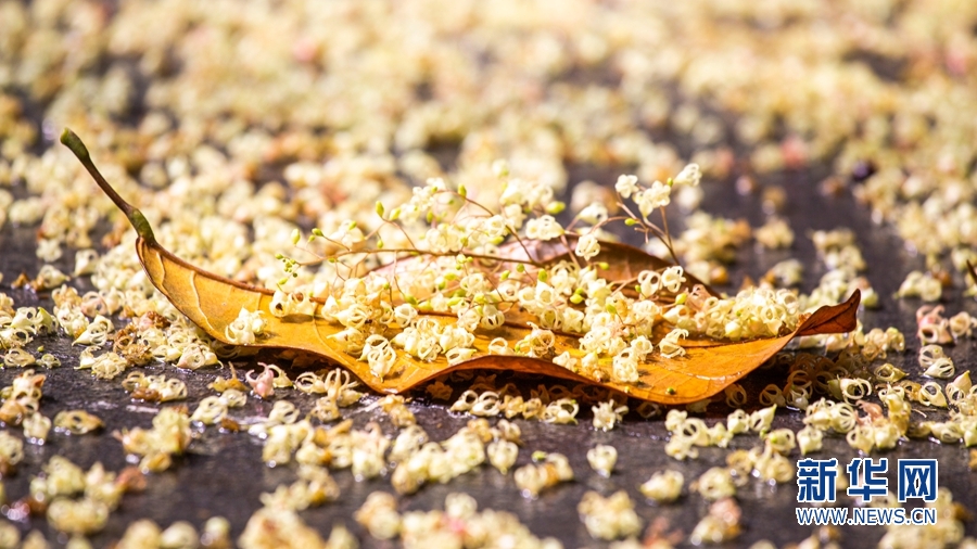 公園里、鬧市中、馬路邊......隨處可見細細密密的花朵落滿地,猶如給大地鋪上了一張嫩黃色的地毯。新華網發(蔡楚楨 攝)