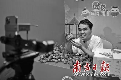 荔枝產業大會上,商戶攜自家荔枝品牌直播帶貨。南方日報記者 石磊 攝