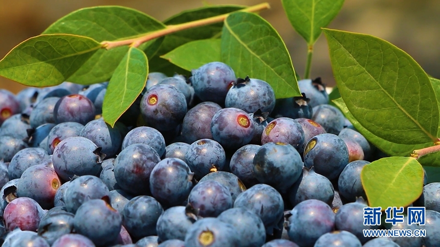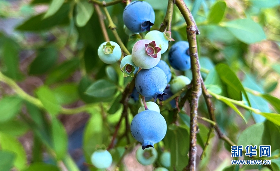 初夏,陽光和微風喚醒了果蔬,藍莓進入成熟季。新華網發(羅素玲 攝)
