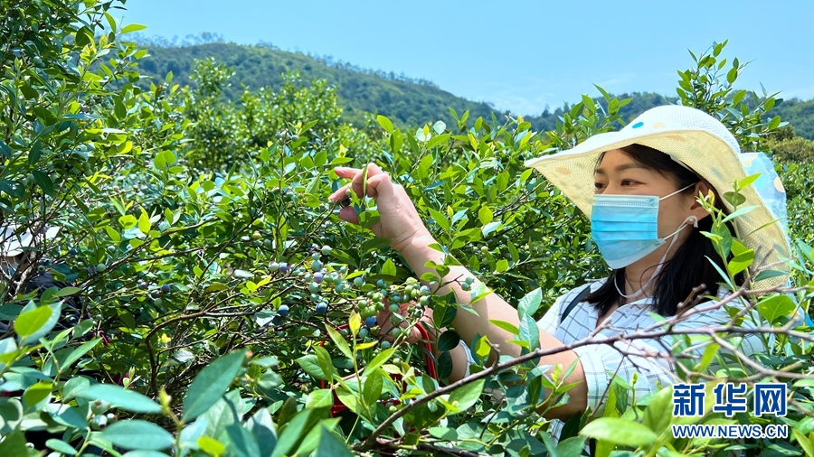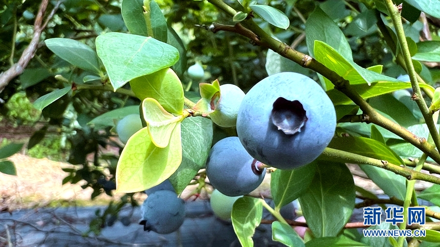 初夏,陽光和微風喚醒了果蔬,藍莓進入成熟季。新華網發(羅素玲 攝)