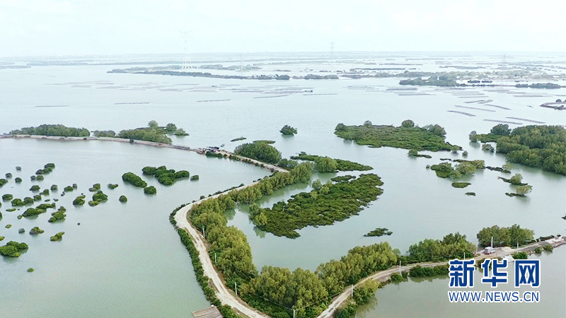 新華網廣州5月30日電(李俊豪)在蔚藍海洋與紅褐陸地邂逅的潮間帶上,佇立著密密匝匝、層層疊疊的紅樹林,初夏陽光映照下郁郁蔥蔥、蒼勁有力,百鳥啼鳴縈繞于樹林間,一幅自然和諧的生態圖展現在眼前。