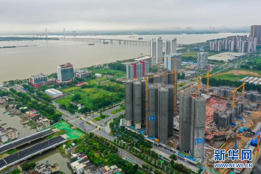 與廣州南沙中國科學院明珠科學園一路之隔的科苑壹號是南沙首個專門為中科院等科研單位打造的人才安居項目(無人機照片,6月15日攝)。新華社記者 劉大偉 攝