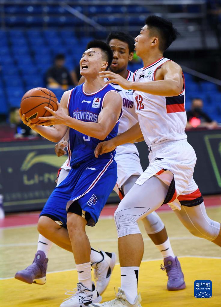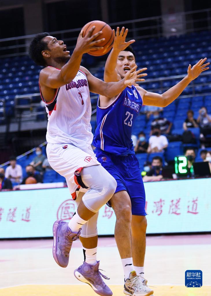 7月15日,時代中國廣州隊球員齊浩彤(左)在比賽中上籃。新華社記者 李紫恒 攝