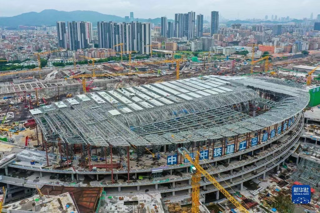 這是8月4日拍攝的建設中的廣州白云火車站(無人機照片)。新華社記者 劉大偉 攝
