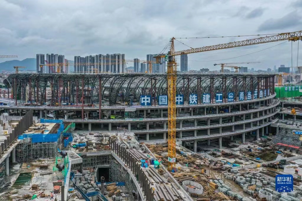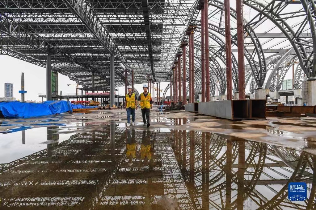 8月4日,建設者在廣州白云火車站一期工程站房施工現場忙碌。新華社記者 劉大偉 攝