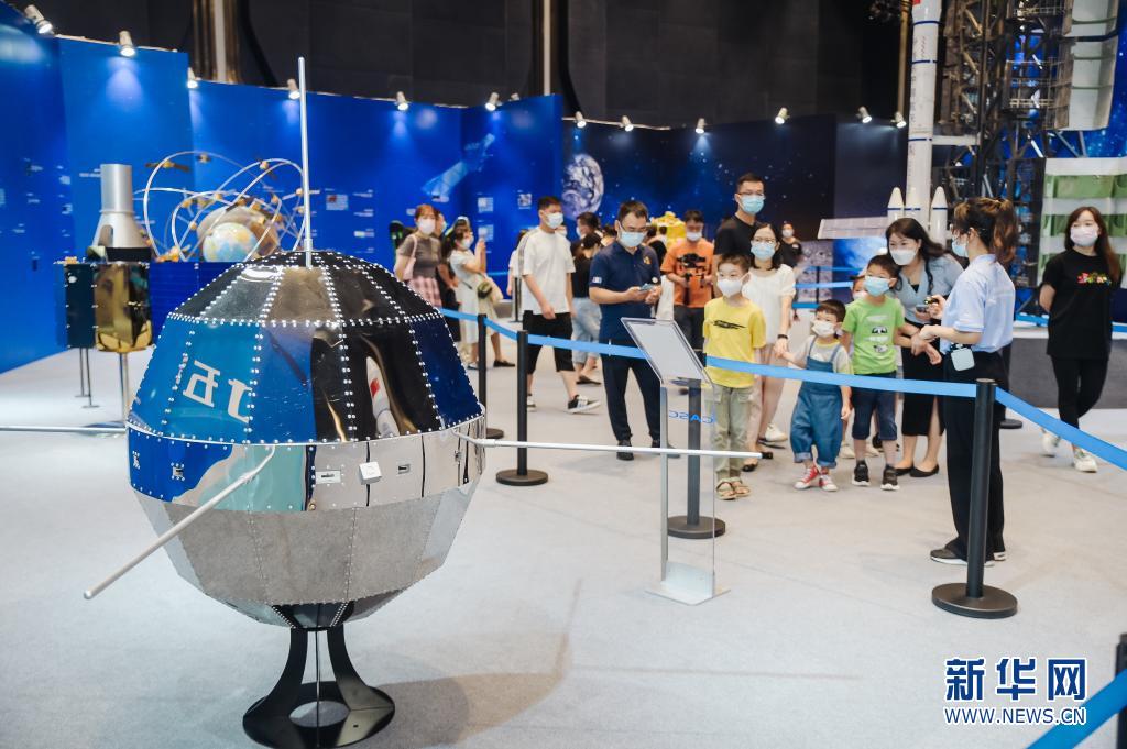 “長征系列”運載火箭以“家族”方式亮相。高分衛星、嫦娥5號月球探測器、天問一號火星探測器、中國空間站模型……該展還展示了我國近年來的航天偉大成就。