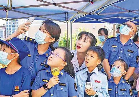 “爸爸,是不是這樣敬禮?”暑假以來,穿著迷你版制服的“小警察”“小消防員”“小稅務員”“小城管”在東莞各地現身,和同穿制服的爸爸媽媽們一起,深入體驗公安、消防等職業,分享家庭文明創建成果,讓和美正氣的家風吹入數百個家庭。